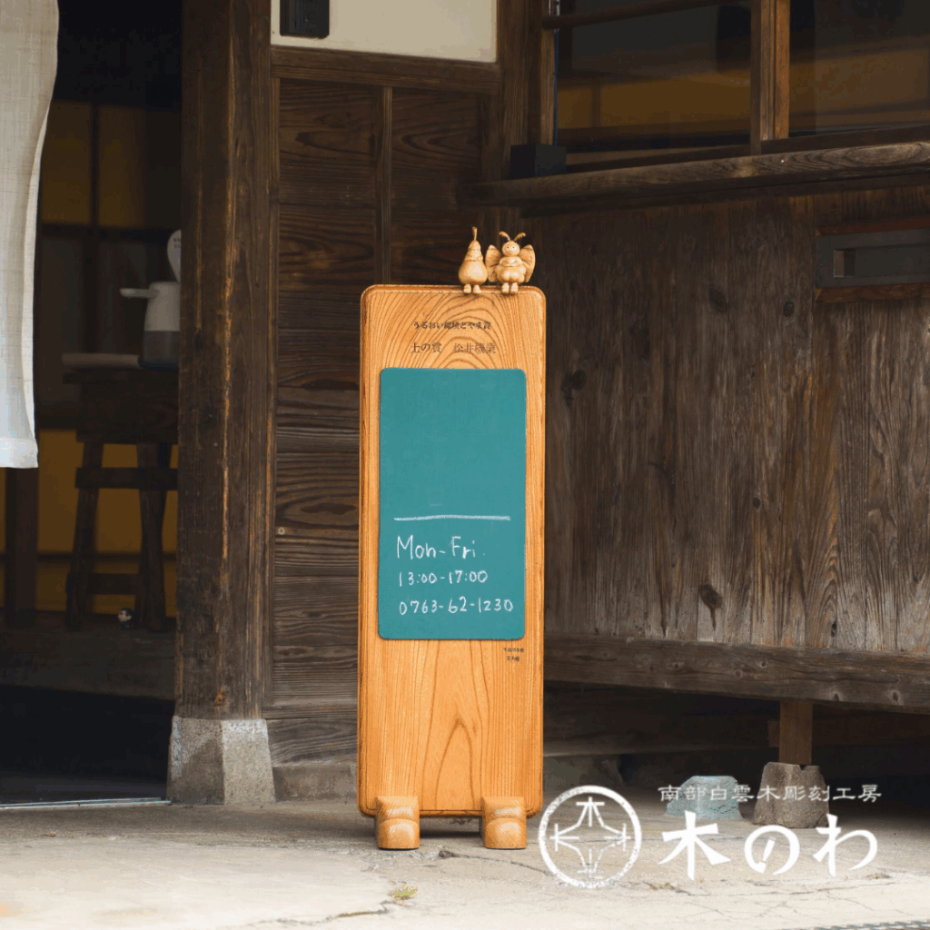 そして、わたしたち「木のわ」では、井波彫刻の新たな伝統の一つに、と「木彫り看板」に力を注いでいます。